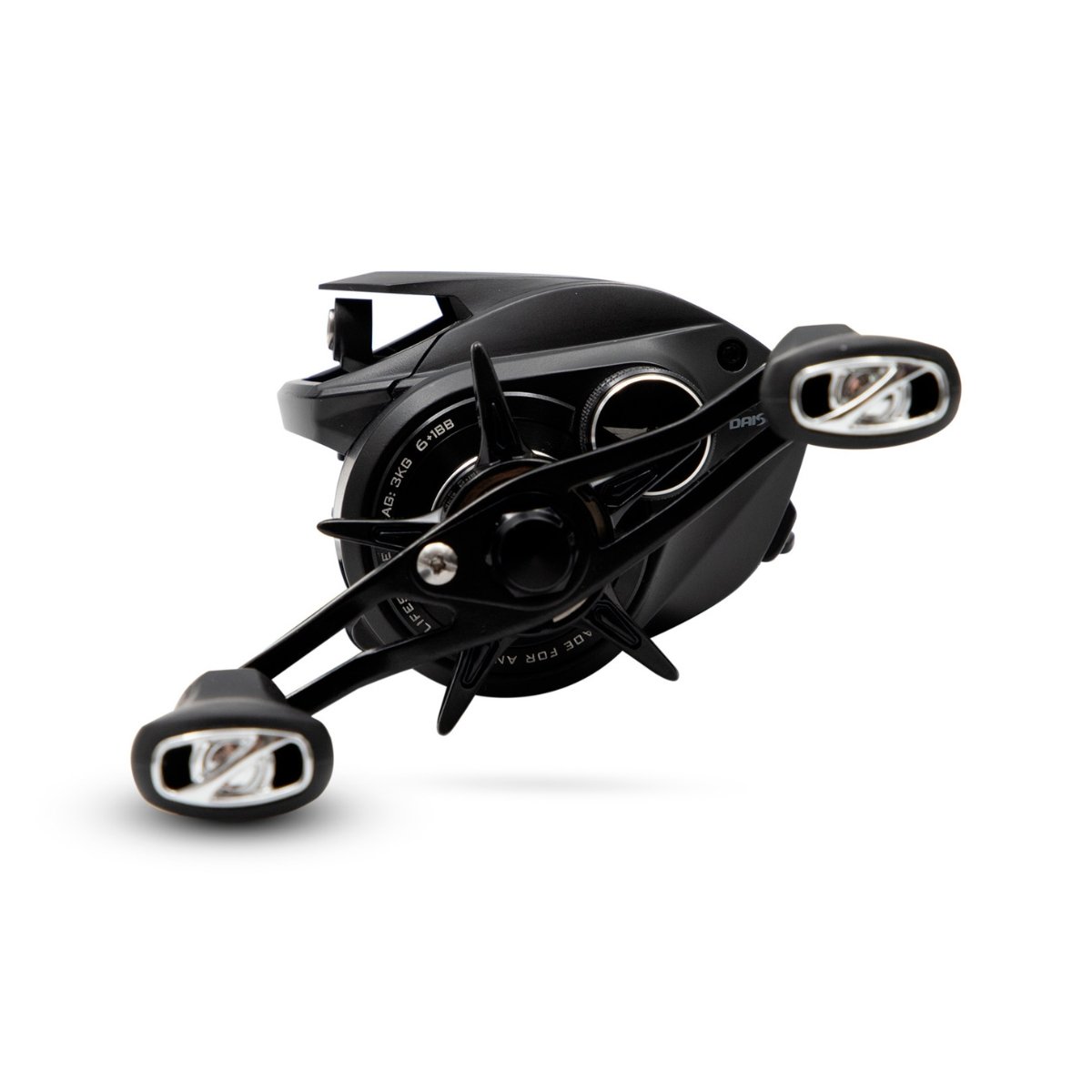 A estrutura da carretilha Daisen Legionary foi desenvolvida com corpo em grafite de alta resistência, garantindo leveza sem comprometer a durabilidade. A coroa em alumínio e o pinhão em latão aumentam a resistência do conjunto, enquanto a manivela em alumínio com knobs ergonômicos proporciona conforto e firmeza durante o uso.