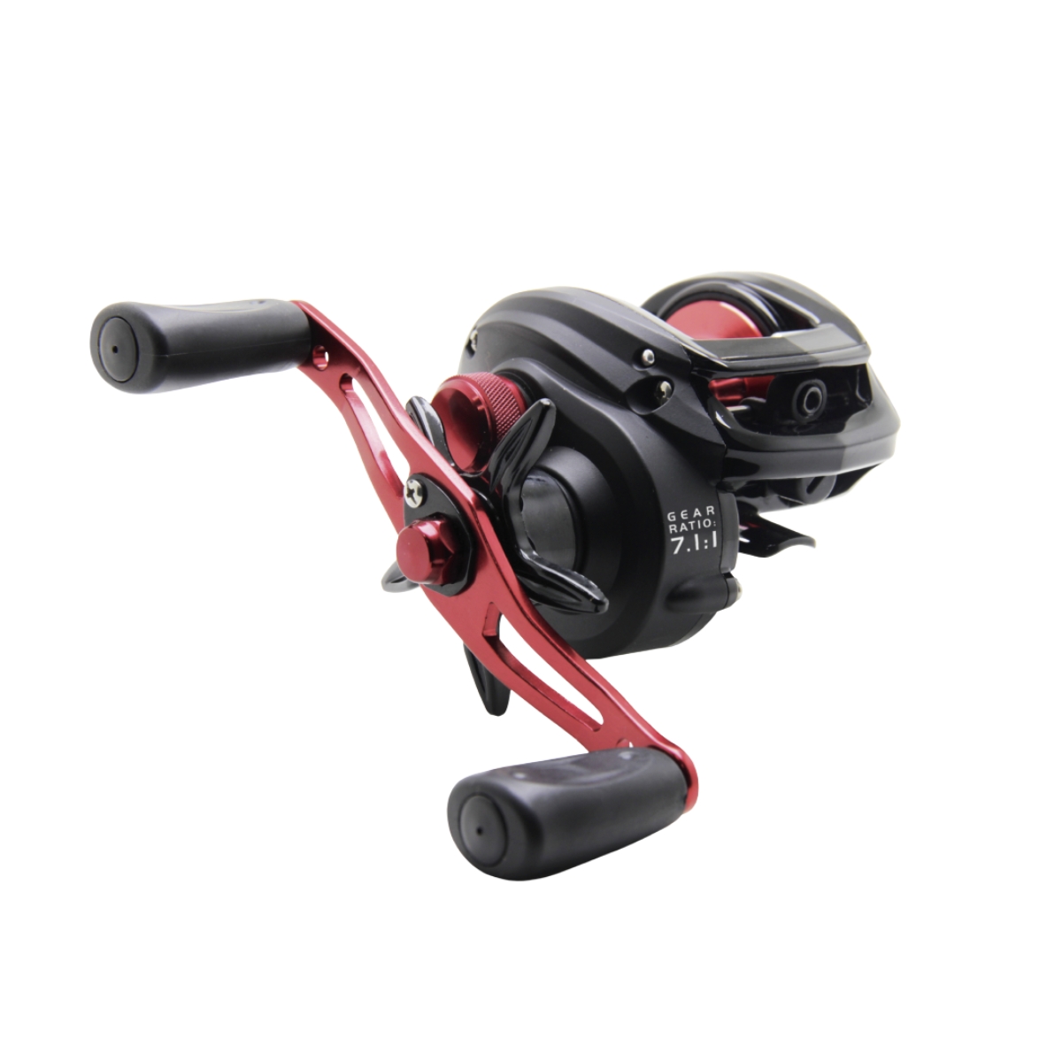 O corpo em policarbonato/grafite e o carretel aliviado de alumínio com eixo de aço inox proporcionam resistência à umidade sem adicionar peso — pesando entre 210 e 225 g. A engrenagem em latão robustece a durabilidade.