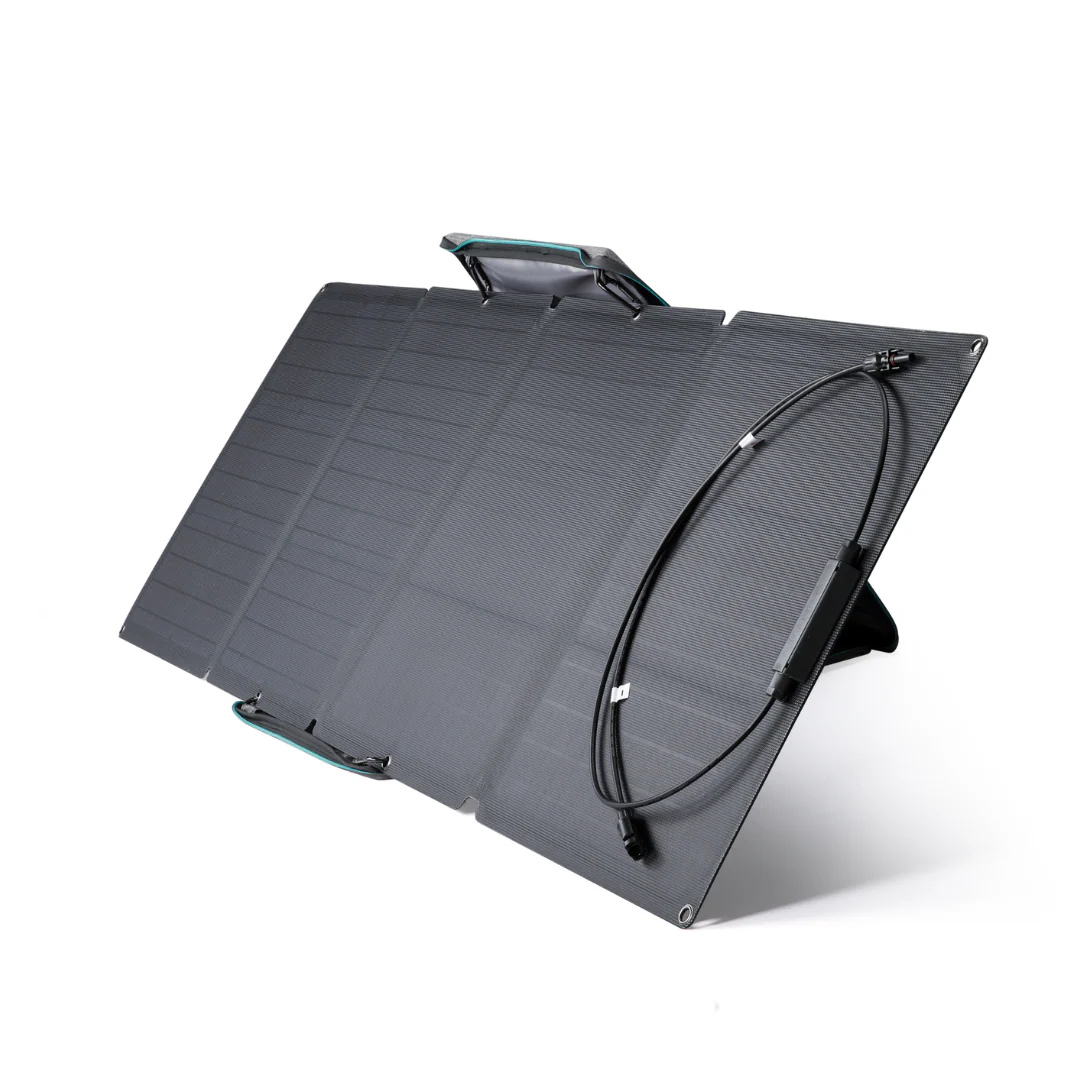 • Painel Solar Portátil EcoFlow 110W (IP68, 22–23% de eficiência) com case/kickstand e cabo MC4 → XT60i.