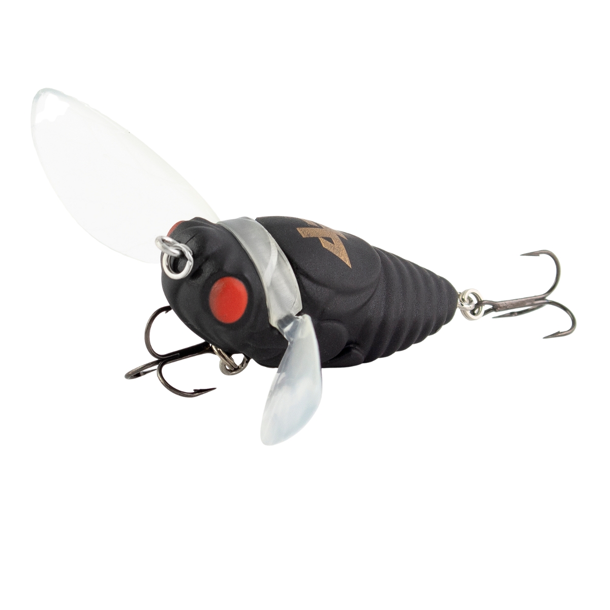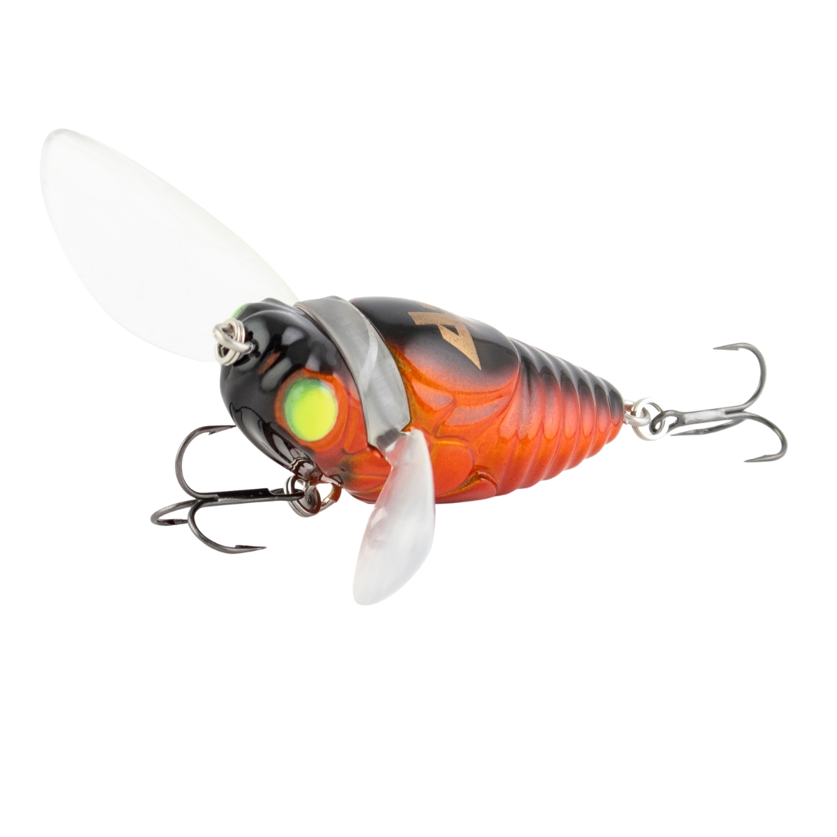 O formato da Nynfa Cigarrinha reproduz o corpo de um inseto alado, com detalhes minuciosos e olhos 3D que aumentam o realismo. Esse visual desperta o instinto de ataque de peixes como traíras, saicangas, tilápias, tucunarés menores, joanas e lambaris grandes. Além da aparência fiel, sua flutuação e pequenos movimentos na superfície simulam um inseto debilitado, irresistível para os predadores.