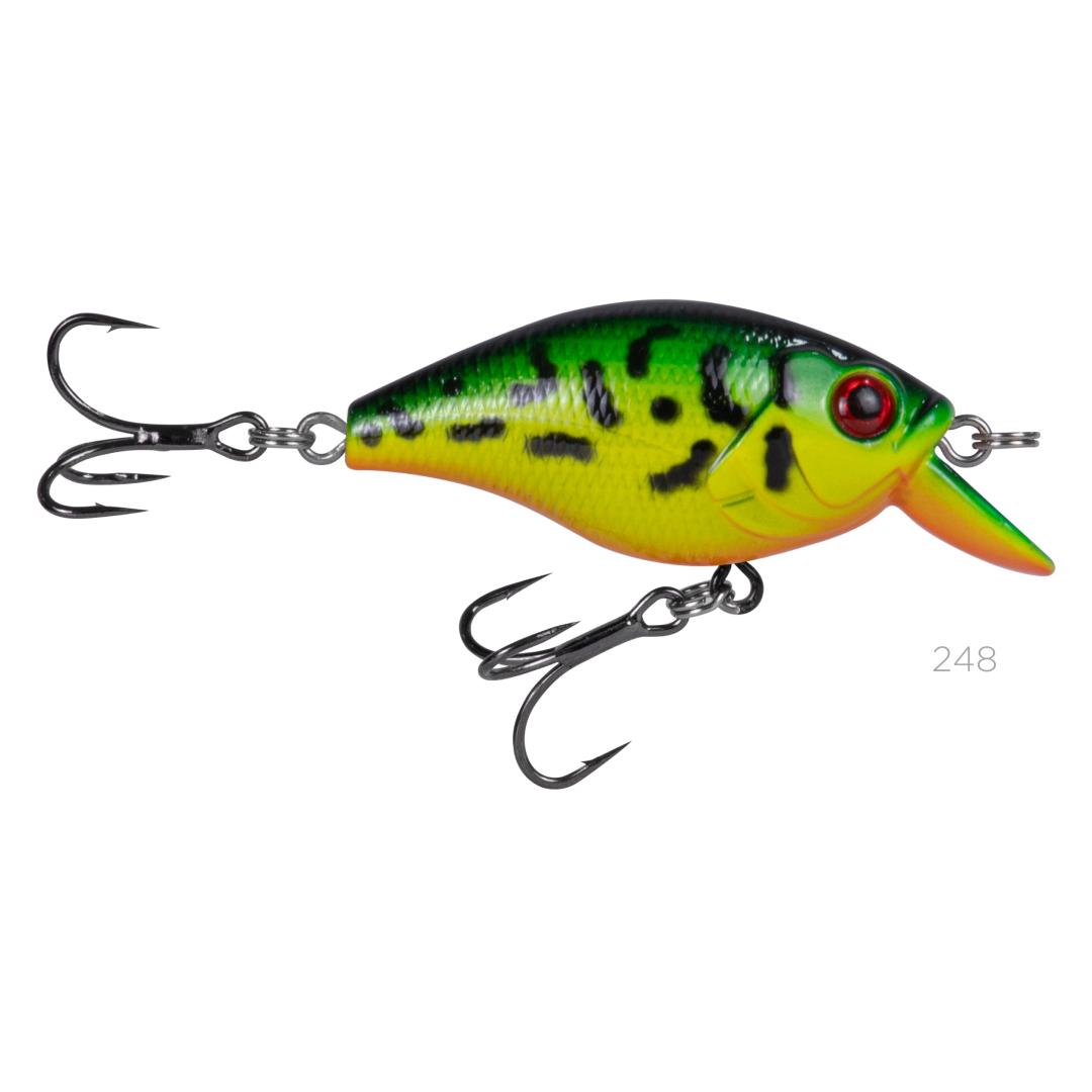 Equipado com **garateias IN LINE #6** em aço carbono e **argolas forjadas em aço carbono**, a **MR Moranguinho 50F** oferece fisgadas rápidas e seguras. O design compacto e as cores vibrantes aumentam a eficácia na pesca esportiva.